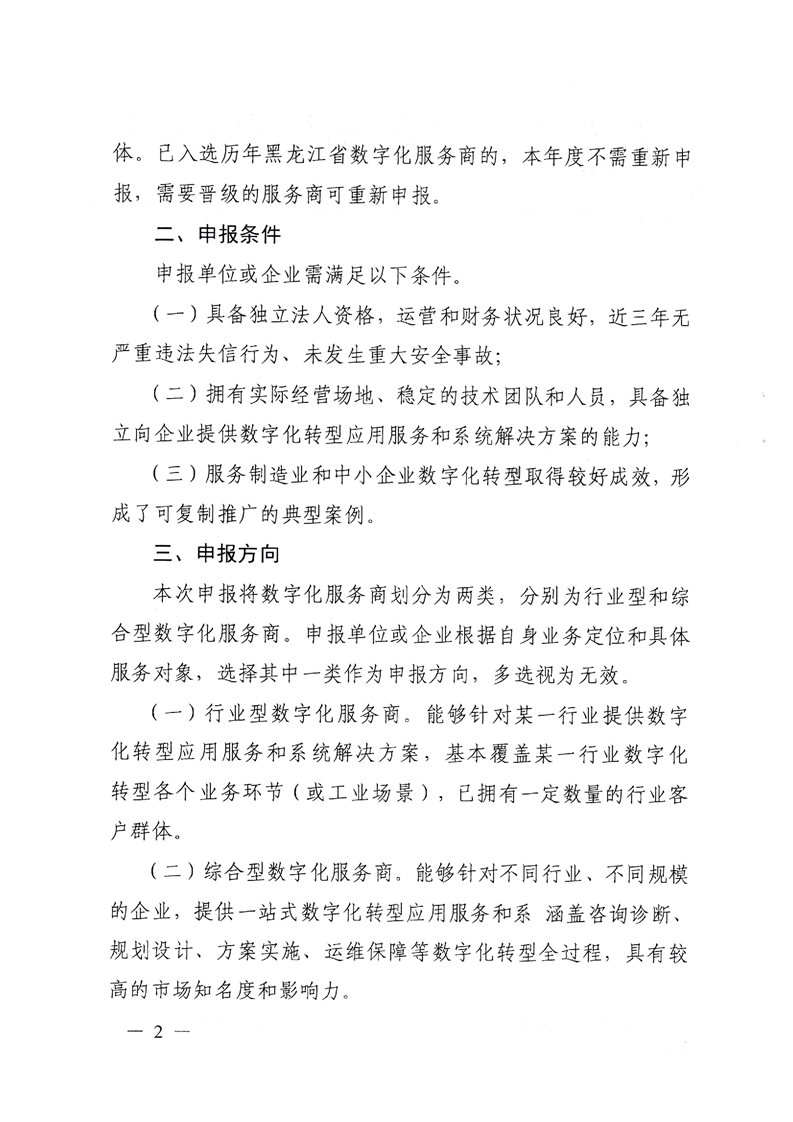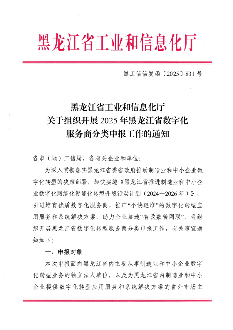 关于组织开展2025年黑龙江省数字化服务商分类申报工作的通知