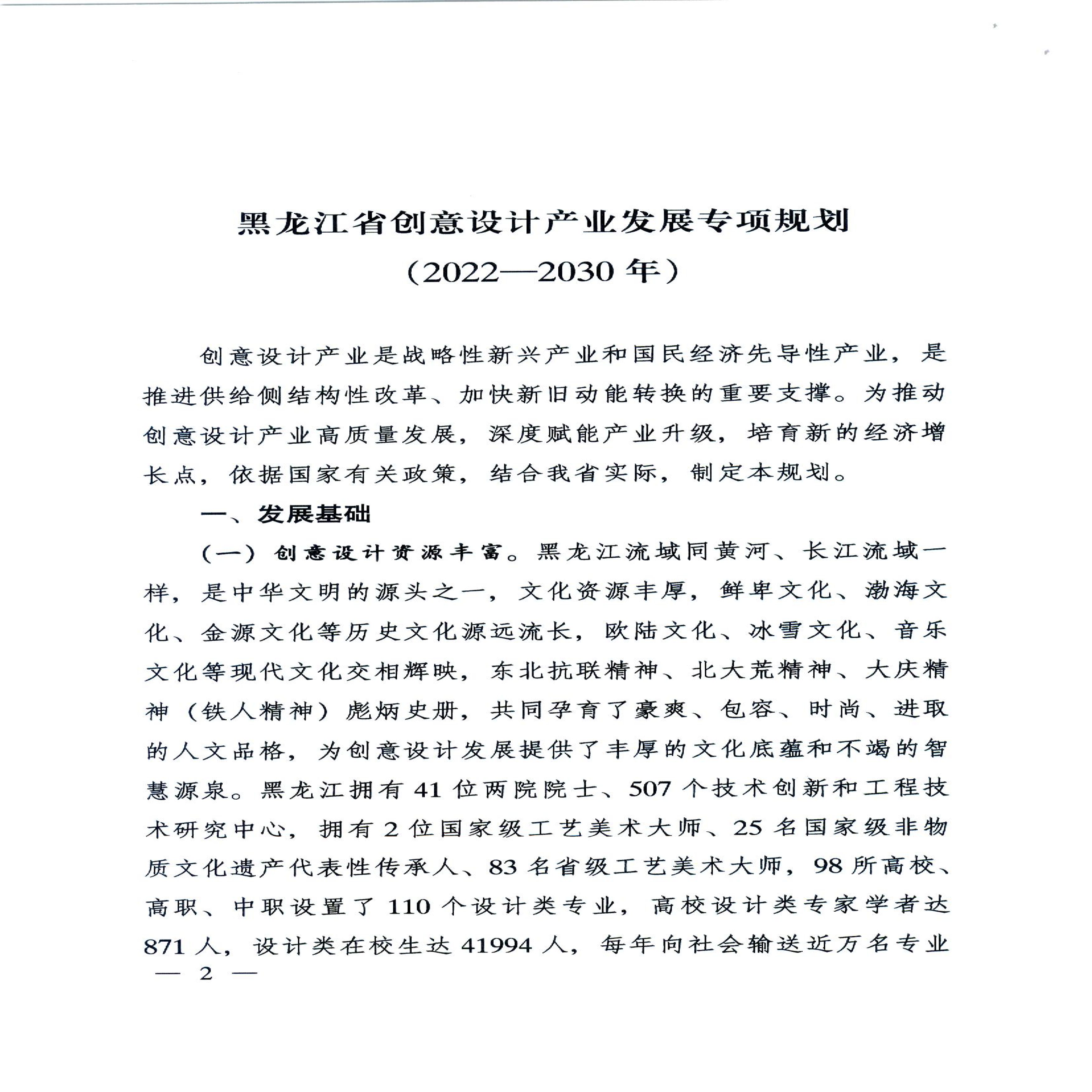 黑龙江省创意设计产业发展专项规划(2022-2030年)