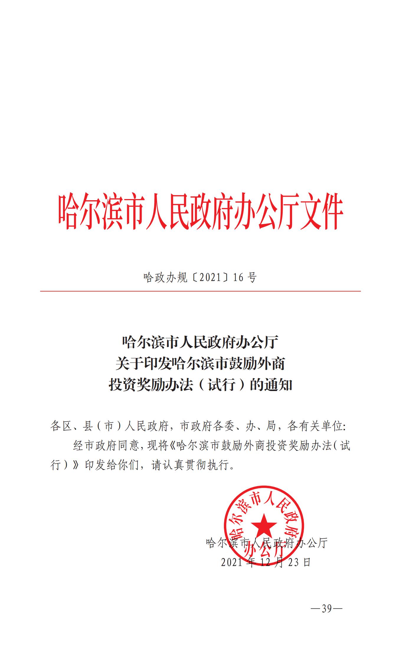 哈尔滨市市级招商引资政策汇编