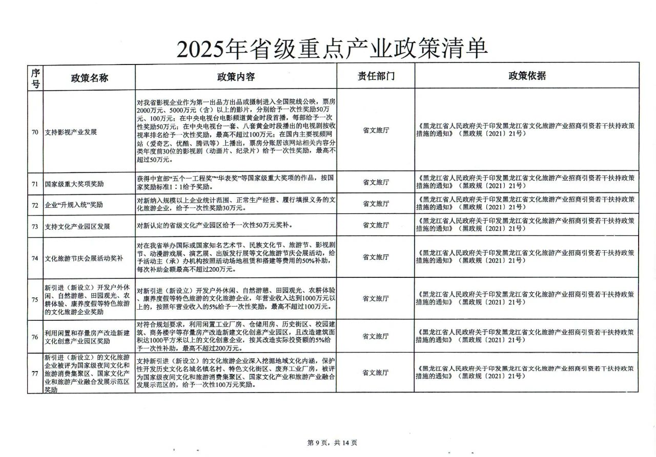 为深入贯彻落实省委、省政府“服务企业效能提升突破年”有关要求,帮助企业“知政策、懂政策、用好用足政策”,推动政策直达快享、精准赋能,助力企业实现高质量发展,现将2025年省级重点产业政策清单,宣传如下:详见附件。